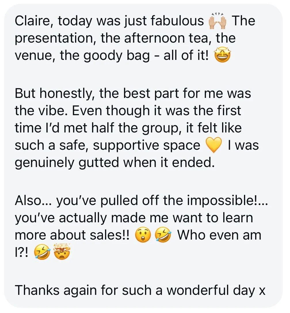 This event is built from the exact framework I use with my 1:1 clients. We strip it back, we spot the gaps, we prioritise what drives revenue AND feels good.